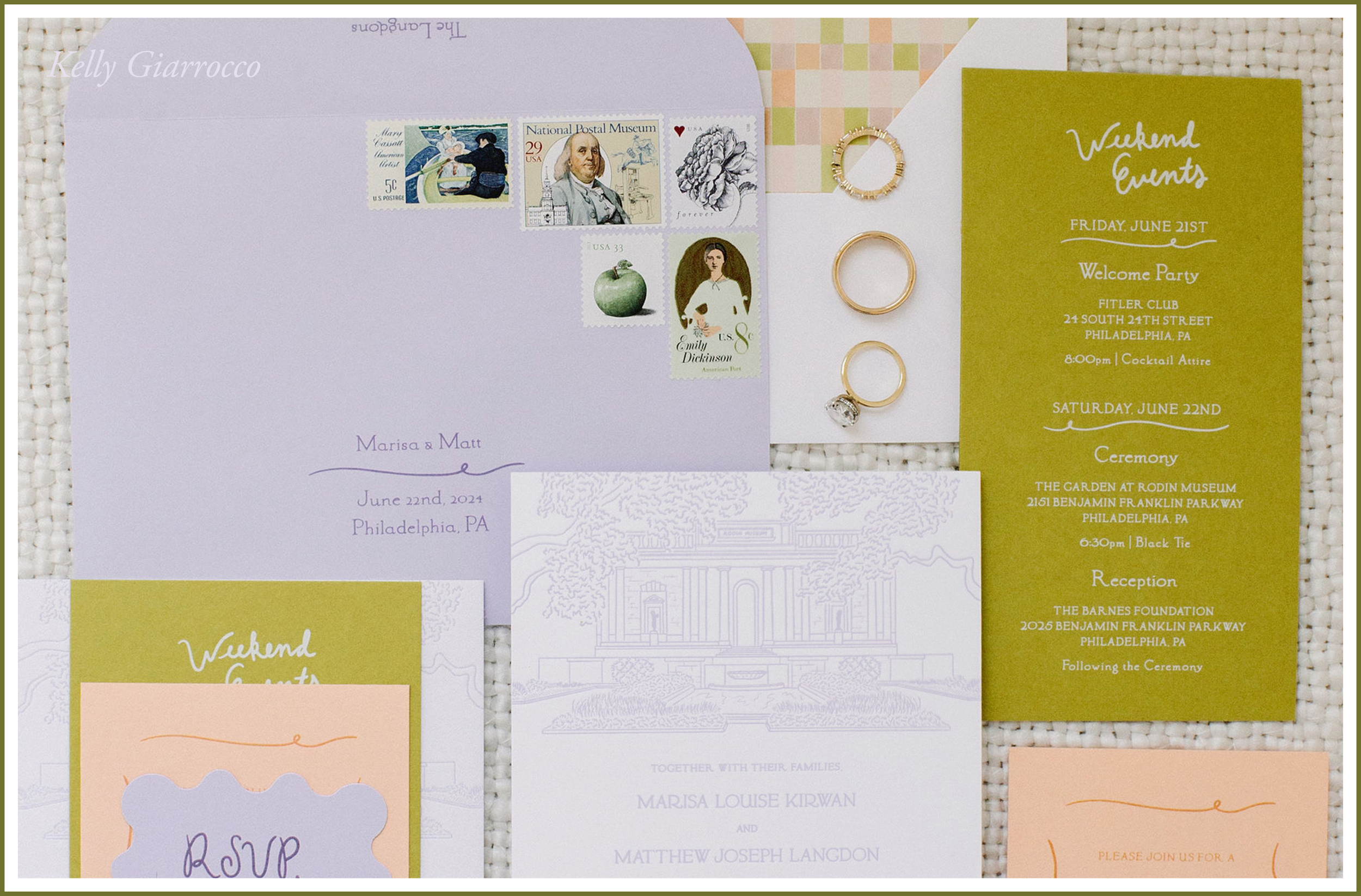 Most couples aim to have their invitations in the mail about three months before the wedding. From when we start your mood board to when your guests receive their invitations, the standard design and production process can take anywhere from 10-12 weeks. I recommend getting in touch at least 6 months before your wedding day, and even earlier for projects including save the dates. Rush projects can be accommodated on a case-by-case basis. In every case, the sooner you reach out, the better!